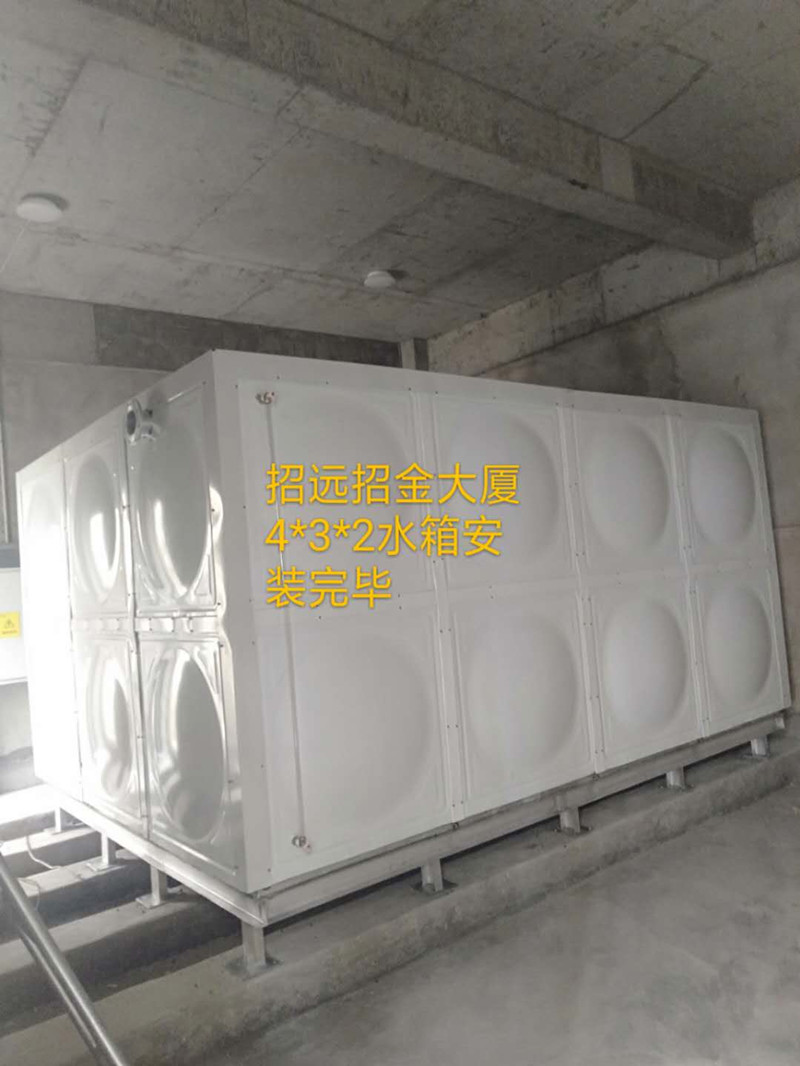 供貨單位:山東省騰翔集團武城模壓制品有限公司施工單位:招遠市招金大廈產品名稱:熱鍍鋅帶聚氨酯彩鋼殼保溫水箱產品型號:4*3*2=24立方熱鍍鋅鋼板水箱已施工完成,得...